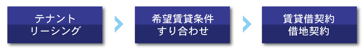 店舗テナント案内、医療ドクター案内、介護事業者案内等/賃貸条件協議/賃貸契約書条文協議、借地契約書条文協議/建物賃貸借(予約)契約締結、借地公正証書締結