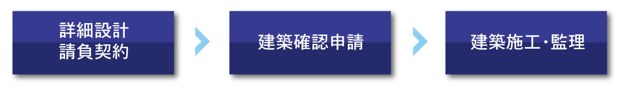 建築詳細設計/建築業者現説、競争見積/見積提出、見積査定・調整/金融機関交渉/建築施工会社決定/請負契約締結/建築確認申請、開発申請/工事管理、スケジュール管理、コスト管理、品質管理